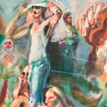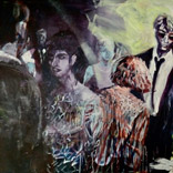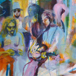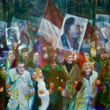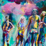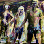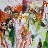 1968 – Rebellion und GestusZurückblicken, erinnern: Musik, Protest, Sex, Feiern. Wir sind viele. Heute faszinieren und amüsieren mich diese Posen jugendlicher Selbstinszenierung. Daher meine Lust auf schrille Popfarben, laute Flächen und kräftige Striche. Wir haben großes Kino gespielt: mit unseren Frisuren, der Kleidung, Plakaten und Abzeichen als Kostümierung. Ein theatralisches Bildervokabular aus Zeichen und Gesten. (Weitere Arbeiten zu diesem Thema auf Papier) |