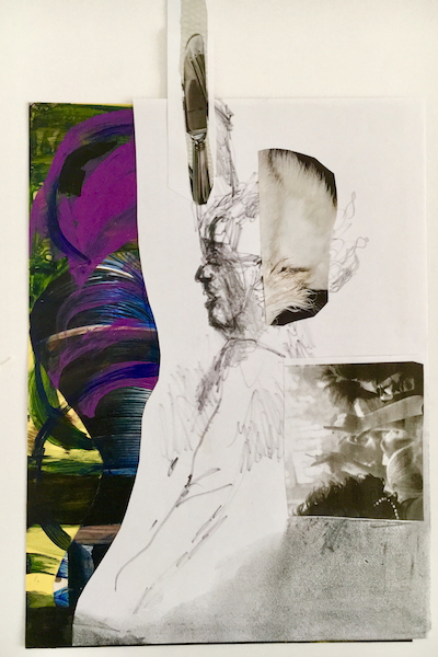 Traumtänzer 3. 2017. Grafitstift, Acryl auf Foto, Zeitschriftenausriss auf Papier, 36 x 22 cm