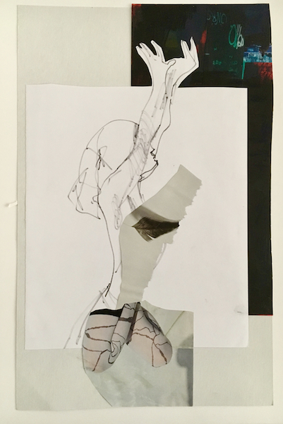 Traumtänzer 4. 2017. Filzstift, Zeitschriftenausriss, Acryl auf Foto, auf Papier, 38 x 24 cm