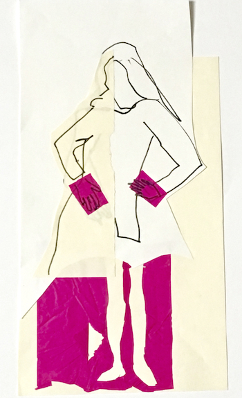 o.T. 2016. Collage, Filzstiftzeichnung, verschiedene Papiere, 35 x 19 cm